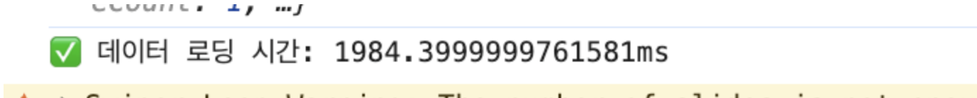 데이터 로딩 시간이 약 2초에서 0.1초로 약 95% 빨라졌습니다.