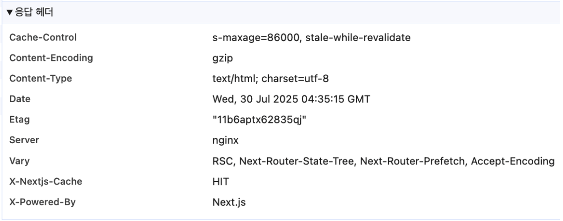 1. 해당 라우트는 정적 캐시 대상으로 설정해야함