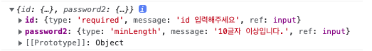 에러나는 요소를 보여주는 객체. type, message를 보여준다.