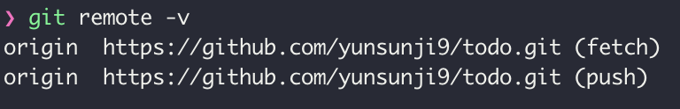 git remote -v로 확인해 볼 수 있다. 아래 이미지에서 todo가 저장소 이름이 된다.